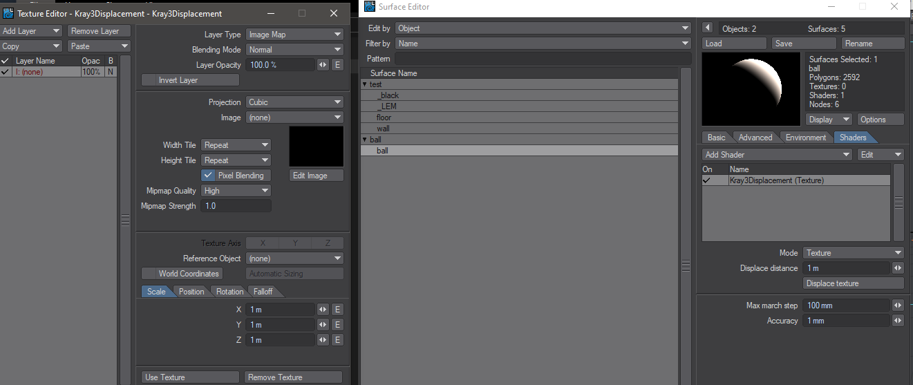 1. Open ball surface displacement shader and put there image texture.