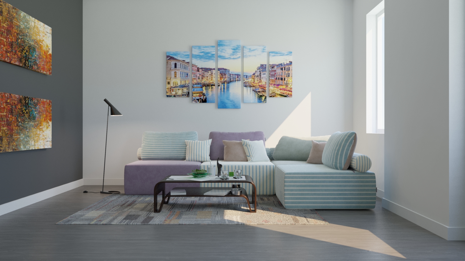 this is is simulation scene which shows difficulty which can be found in interiors with shader surfaces and complex objects.