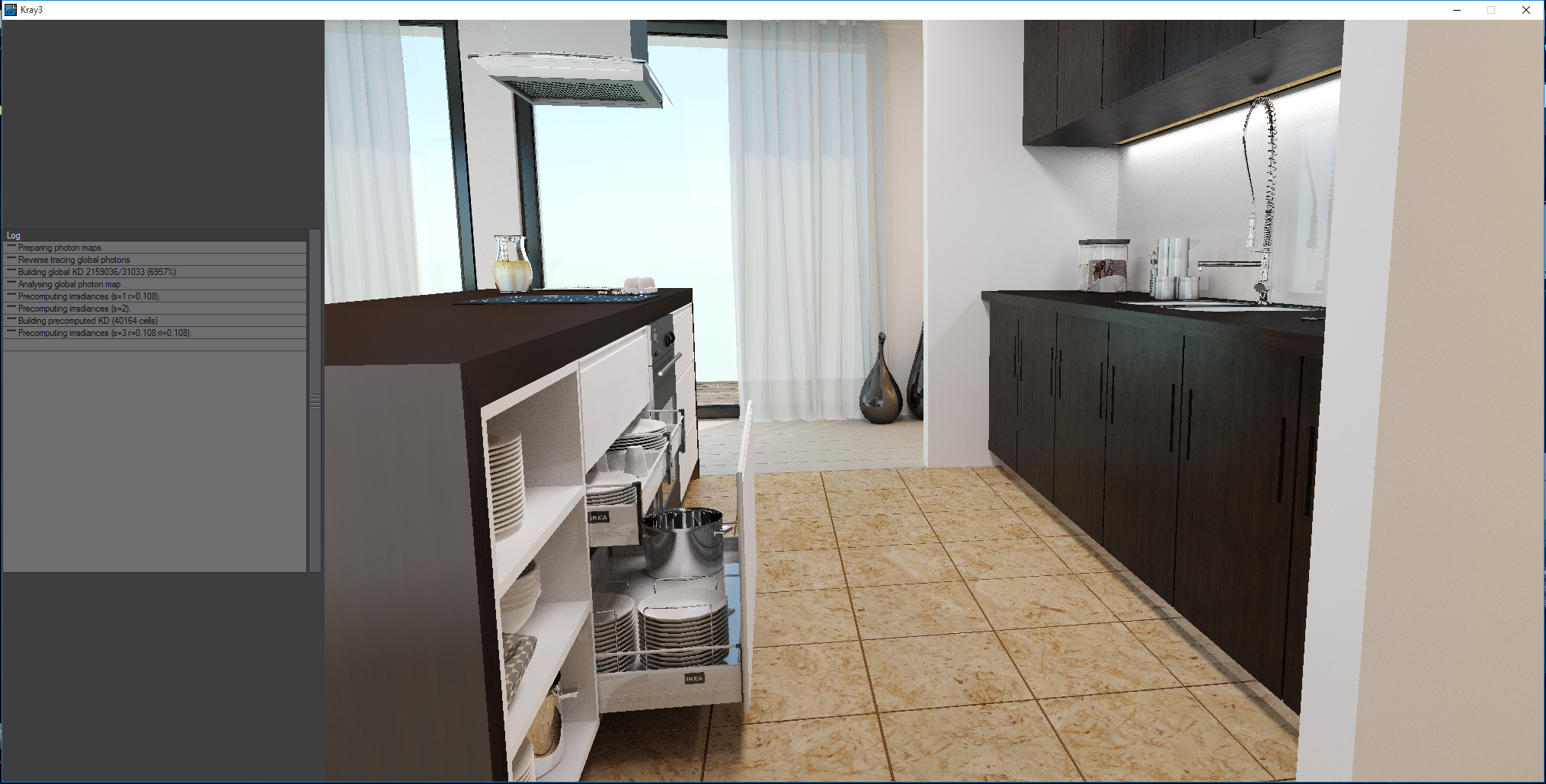 Here 5 minutes end of render (We do not have yet save image option from KrayVPR and also Anti Aliasing is in developing):