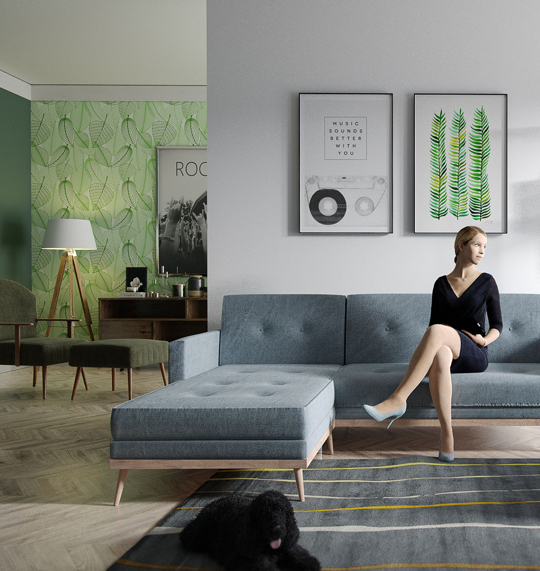 In principle that's super cool stuff, but the problem I have at this moment is that it's sort of a giveaway that the image is fake. Arch Viz images have become almost perfectly realistic in their simulation of light distribution, material shading and lens effects, in essence looking like a photograph to most people. The skin on these models however places an intuitively fake object in the middle of things, ruining the illusion...