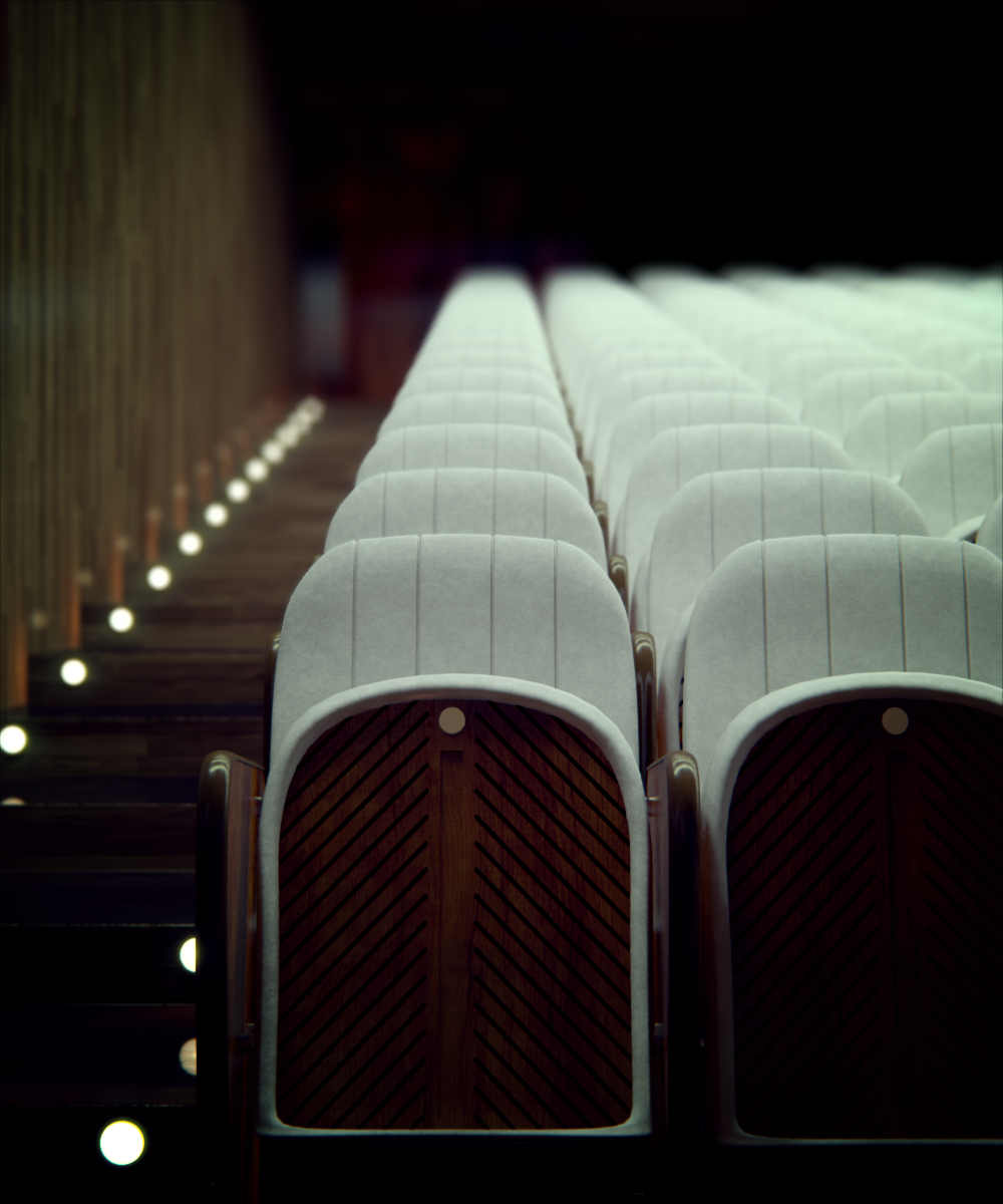 Naprawdę świetna robota. Jak zwykle nie ma się do czego przyczepić. Idealna scena do zabawy z głębią ostrości, rozmywające się rzędy siedzeń. Kadry pod światło widać tylko kontury pierwszego planu i odbicia. Świetny sposób na klimatyczny i realistyczny render bez konieczności walenia milionów poligonów i czasochłonnych ustawień tekstur. Kiedyś jak znajdę czas postaram się zrobić coś w podobnych klimatach. Poziom prac naprawdę nie osiągalny dla większości. Jestem ciekaw ile Panu zajeło zrobienie czegoś takiego ?