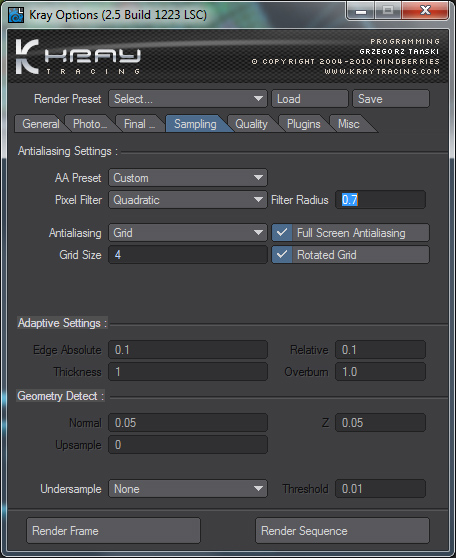 Here is render straight out of kray with no quickLWF and 3 grid AA and the new settings. Could use some colour correction, right?