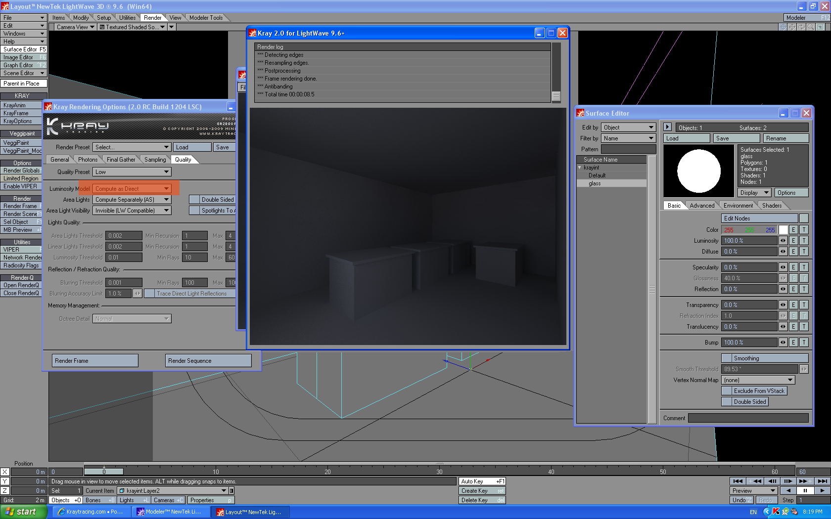 3. on the quality tab of Kray, change the "luminous model" to "compute as direct" (see image)