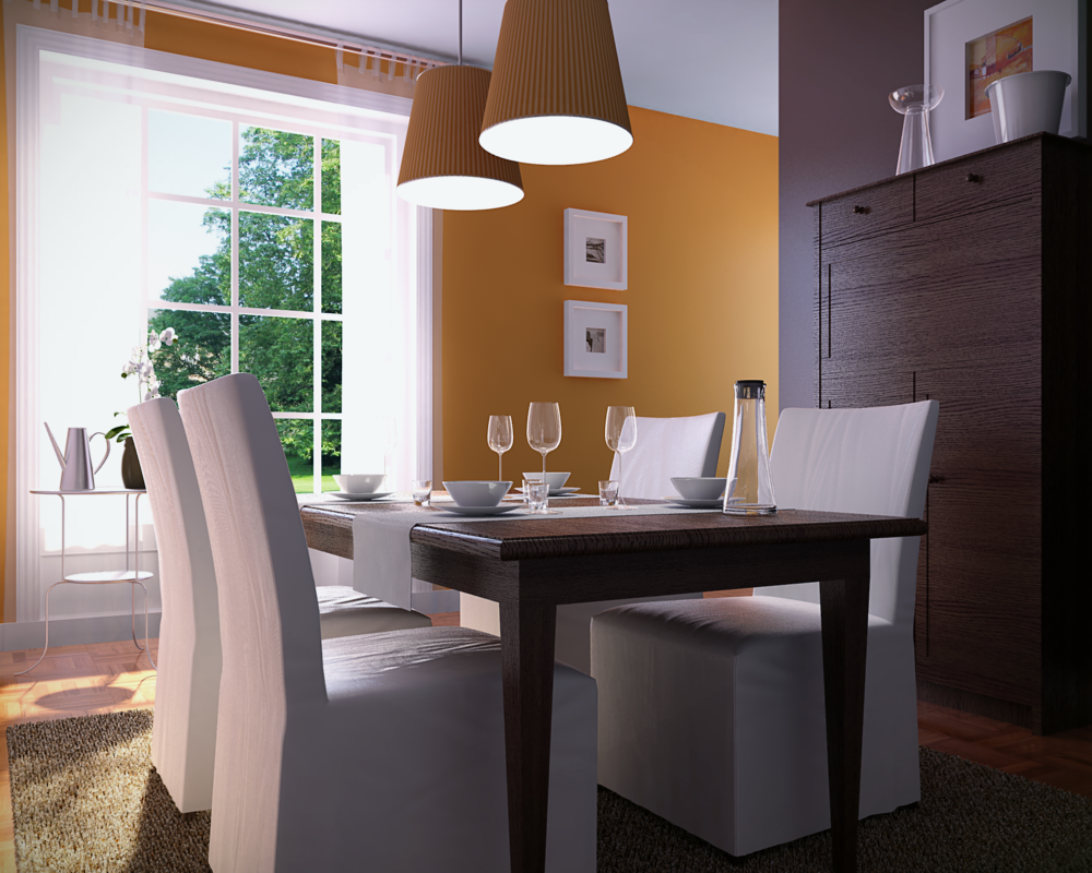 Small diner room. Only Lumi Panel. Physky with new function (testing) : controls of smooth shadows and control strenght of Sun.