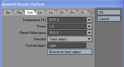I really like the feature in Maxwell for there Physical sky system. It is very similar to what you have done in Kray just there is a Direction pull down menu. It let you choose track from location (what we have now) and track object. Most of the time in Maxwell I setup sunlight in lightwave as normal then track that light to get same lighting and shadow. It would be great in Kray had this option.