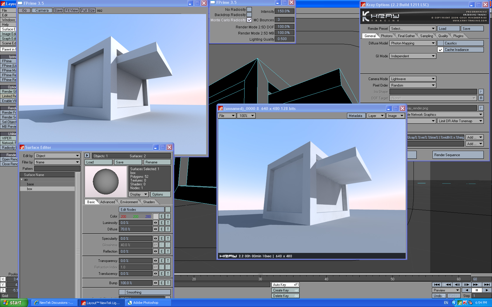 i know fprime and kray are different rendering engine so therefore i will be getting a different result. but for what i can see from my test, i kind of like the result from fprime than kray. please see attached image. kray has low default settings. maybe it can be achieve in kray but how, can anyone show me how? you see on fprime test, the corner of the box has good contact shadow and it defines the corner and the box has some kind of occlusion going on as seen on the surface of the box meaning fprime is not flat as compare to kray. as i said maybe it can be done in kray, please can somebody show how? it is a simple box radiosity test and fprime seems simple to adjust and nice instant preview and i like the result. kray please let me know how to acieve this result in simple way? thanks