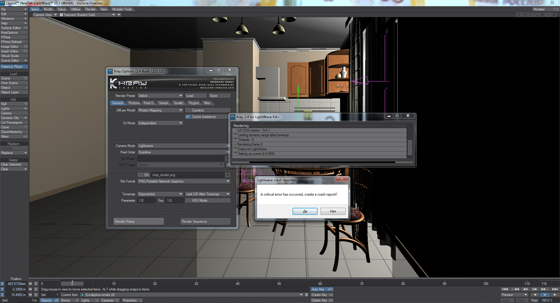 Every time you try to render the scene fails, LW closed. This occurs in Ligtwave10.1. With version 9.6 works? Why is this happening?