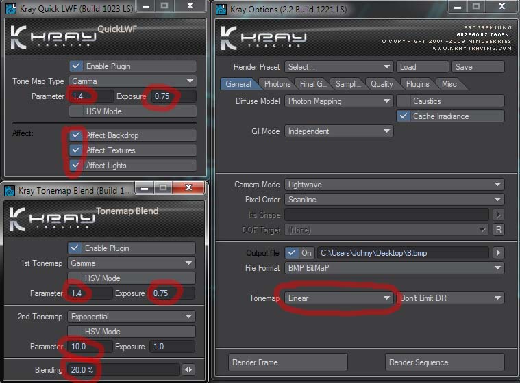 1. LINEAR TONEMAP in Kray General tab (means OFF)