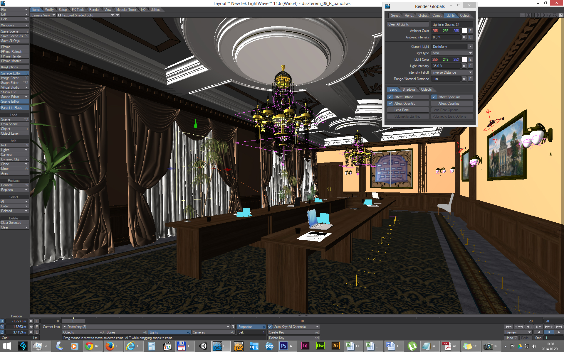 where are wall lamps and ceiling lamps (I think you did that)...just do not try increase power of bulb luminescence lights too much (level 300% is maximum!...after that you will start have problems with blur quality and photons map quality).