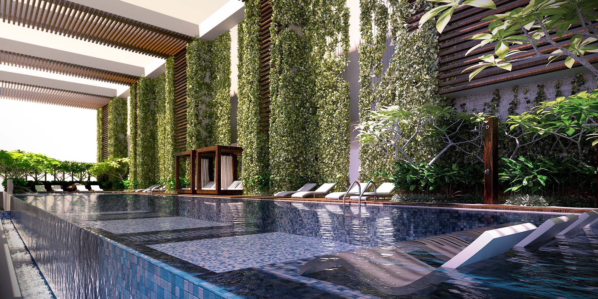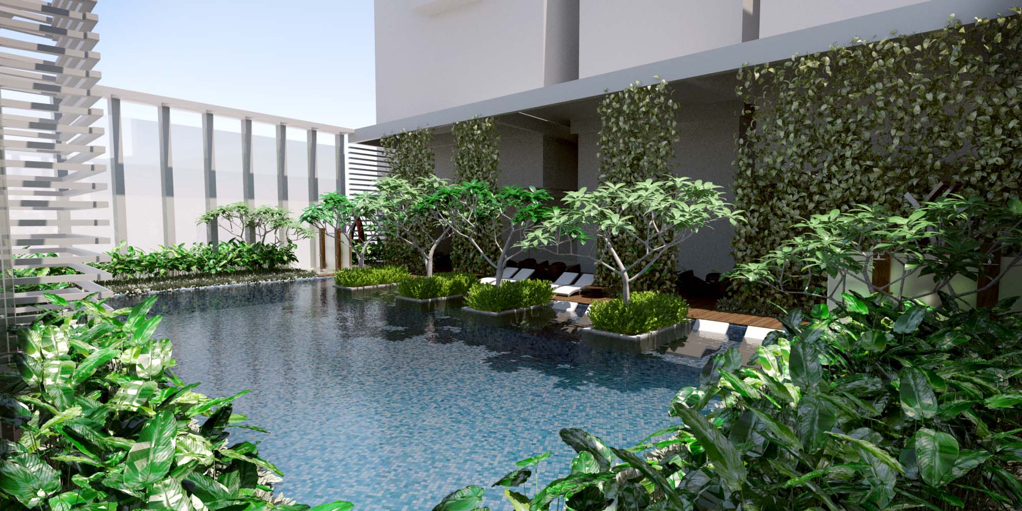 I love the lighting and the vegetation, pool.