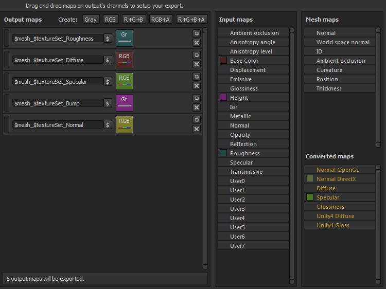 4) we can now output different maps as diffuse, reflection, normal, and so on.