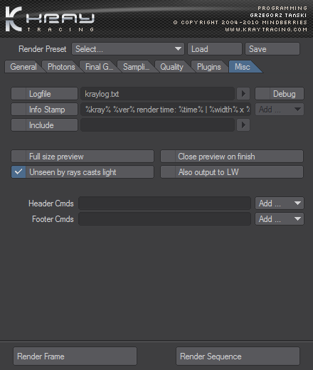 1.Select in Kray GUI Unseen by Rays Casts Light