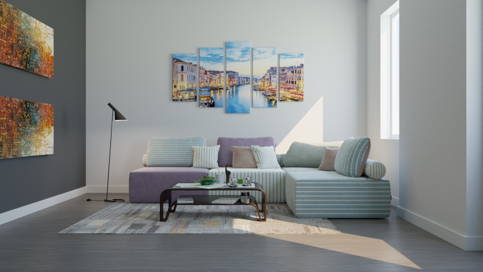 this is is simulation scene which shows difficulty which can be found in interiors with shader surfaces and complex objects.