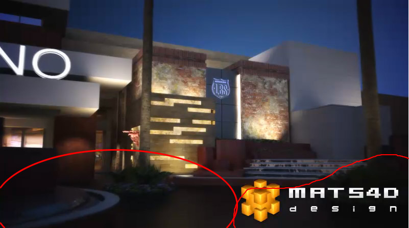 - I think you did a great job on the exterior of the Casino. My only critic here would be more lighting on the ground level. Maybe just some lights shining in to the planters to accentuate the planters and give a little light to the flat work. Some water fountains have lights too. (See attached image)