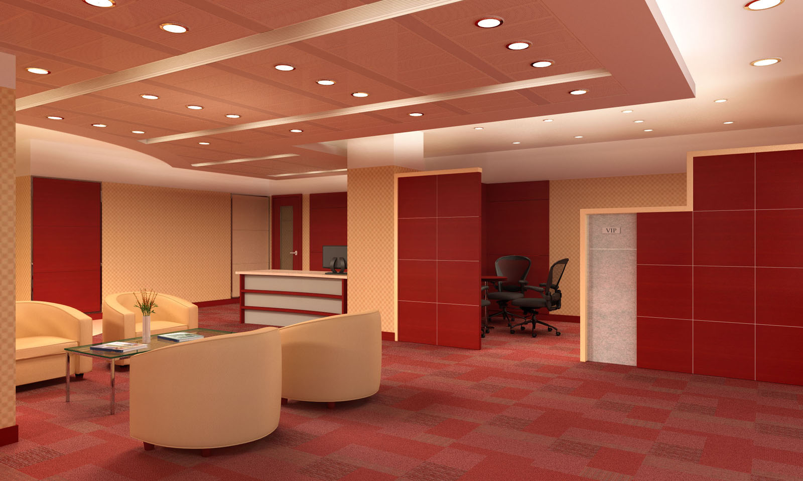 nice render. I dont like the color scheme too much though. carpetting could be too red. What did you use to light the ceiling so smooth? I used lumi lights but can't get that smooth gradient light on the ceiling. Area light produces blobs of lighting if I use it too close to ceiling.