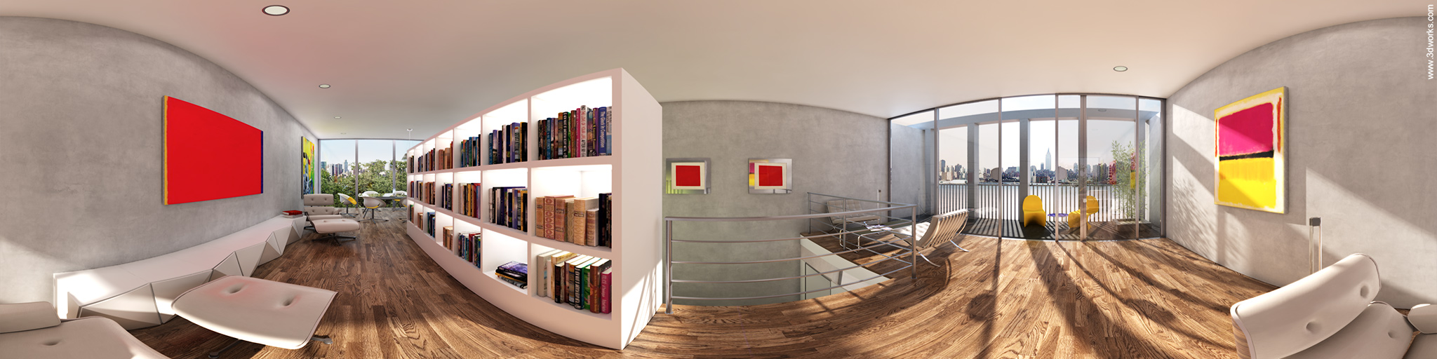 hi k-friends, showing 2 interiors of a scene which to older members here might look somewhat familiar, which i just refined and updated now for some new portfolio images. in this shots, i used liberty3d's great new panoramic cam from the 'uebercam' plugin for rendering out 360 degree panoramas... output as HDR's and postprocessed in PS.