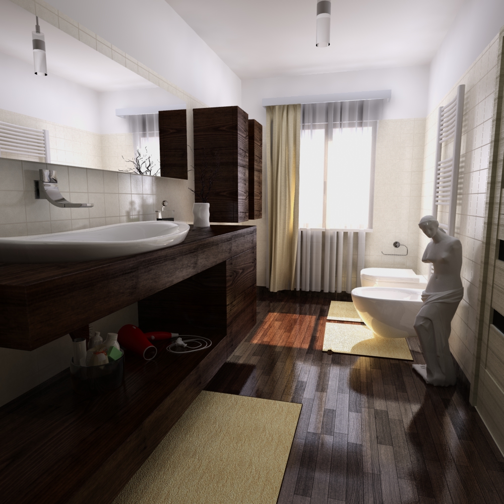 I coldn't use a shift camera because the client wanted a real lens camera setted on 11 mm. About the materials, i received the texture from the modeler and he reccomended to use those texture... I had to fight to change the texture on the floor and the tiles on the wall. Anyway, just for personal purpose I would like to improve the quality, so, can you tell me which improvements would you do?