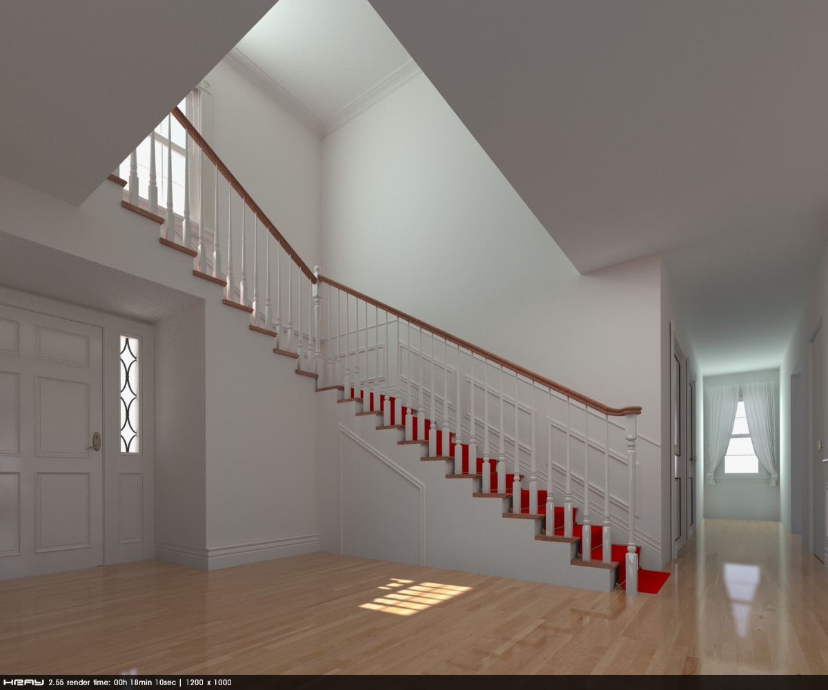 Here my fast test. Interior is pretty much difficult to render: there are very small windows and very few. For that scene must be small trick: Area Lights in windows must be bigger then windows holes.