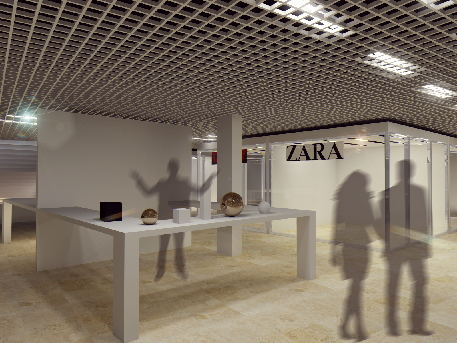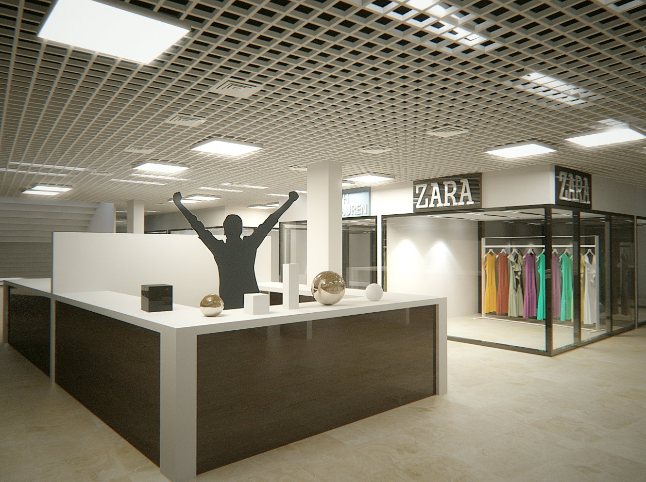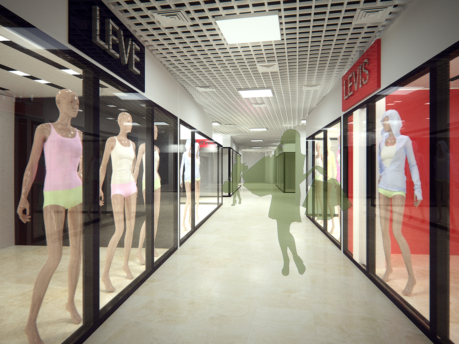 2) Add more visuals to walls, or just as windowstickers. This has two advantages: first of all you add life to the scene in a very quick way (just Google 5 minutes for nice fashion images and you're done). Secondly, because you can cover up parts of windows, you hide a lot of the empty space.