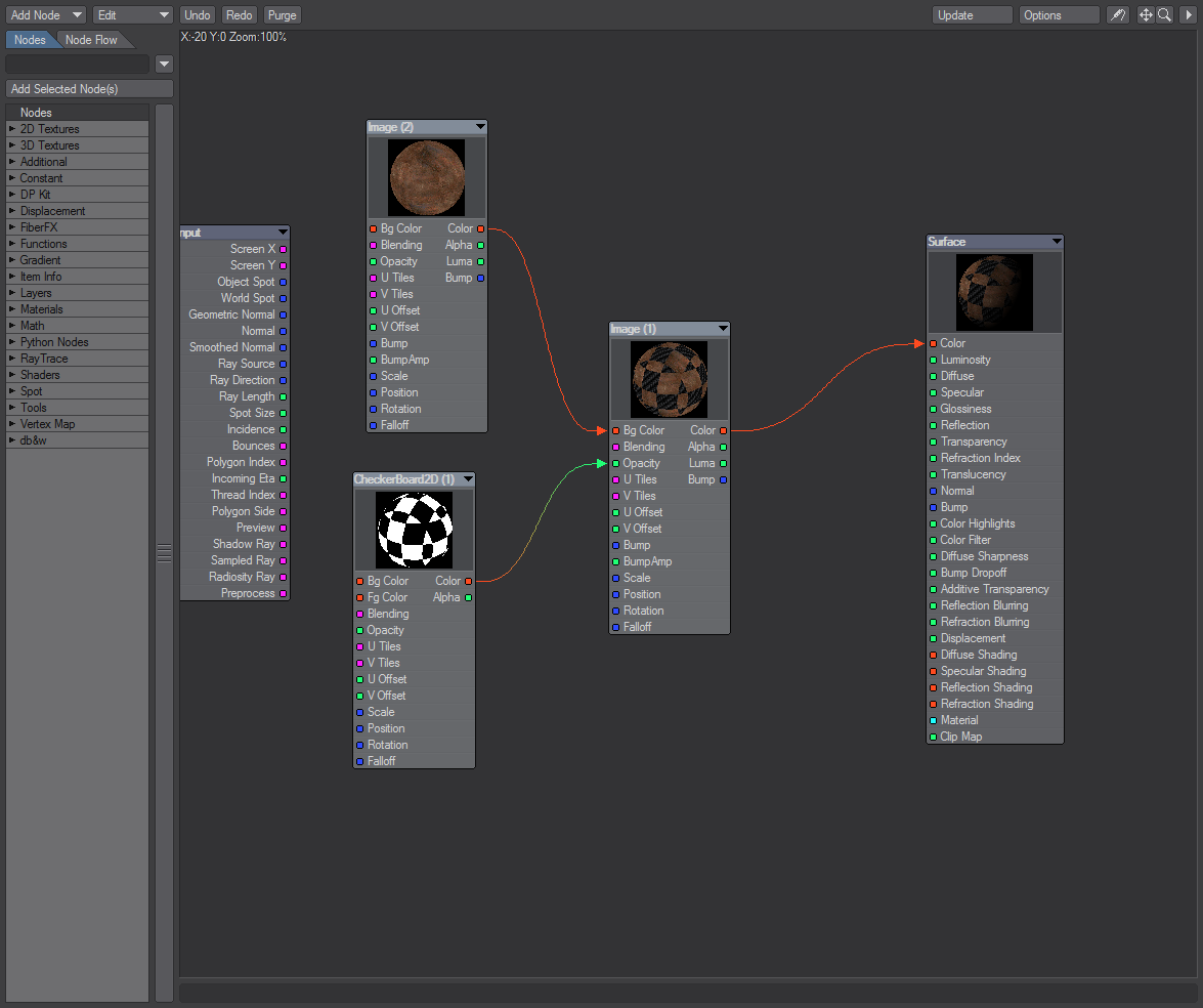 In this Node (CheckerBoard2D) by opacity you control strength of alpha: