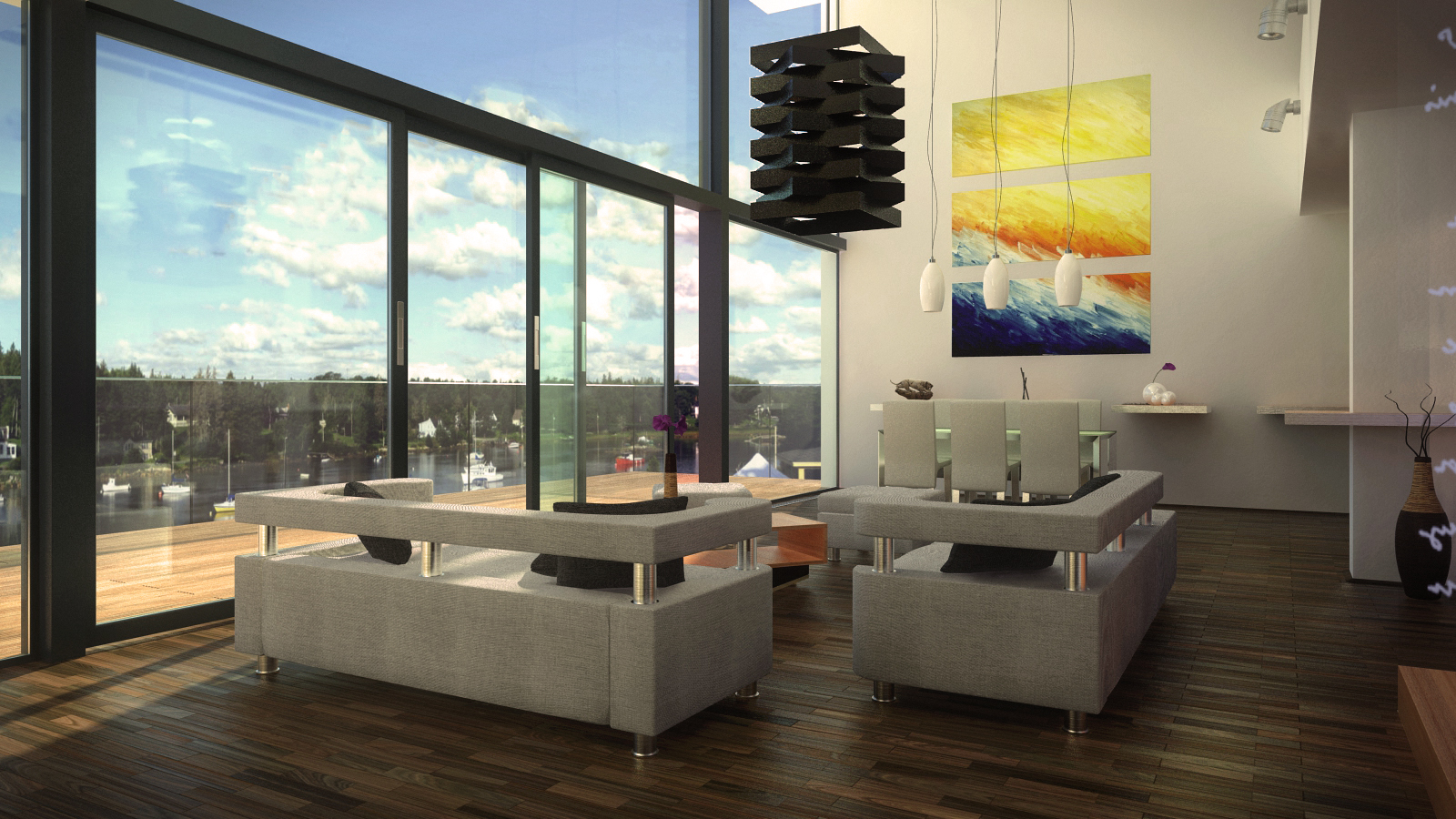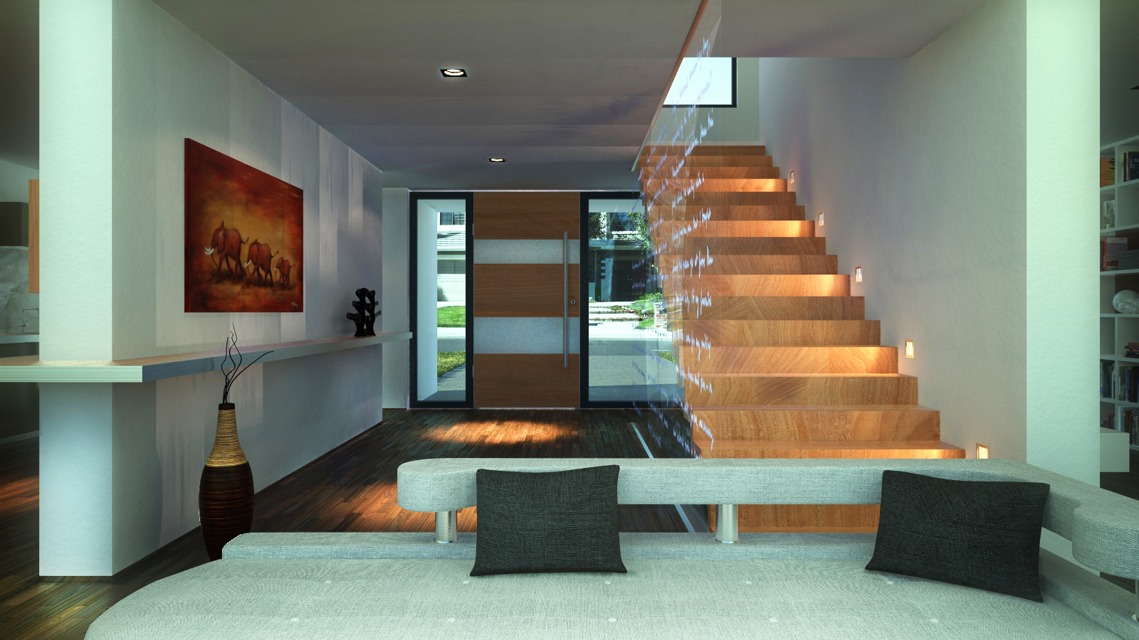 I made some PS. Next time try don`t overbright walls and put more light inside (I thing You did`t use exponential and gamma, this is linear tonemping?)