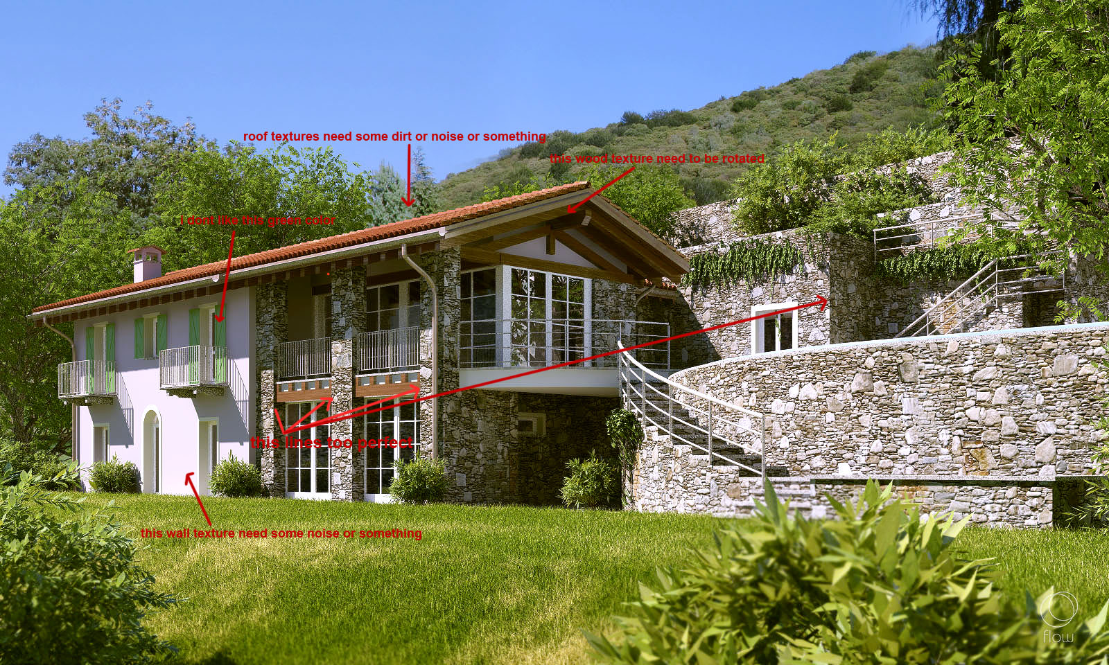 Very good. :D A bit strong translucency on leafs (imho they are too bright in shadow). Next time please use Z-buffer for DoF and small fog for background (behind house)