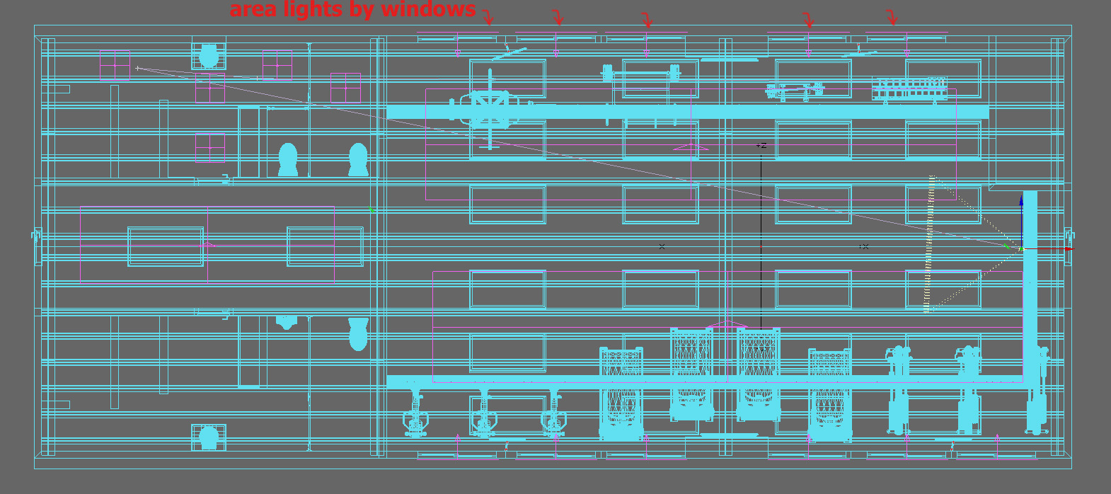 I've got an interior scene that seems to me to be rendering very slow for Kray. And I've got to do an animation for the project. The render times are around 13+ min at a 720 x 400 resolution on a 3.3GHz six-core machine. I've tried using luminous polys to light it (you can see those in the attached image) as well as (not at the same time) the large lights scene via the top view. I've got area lights at each of the windows which have been on when I use lumi polys and the large area lights. My settings are pretty basic (see below). Any quick help on this would be greatly appreciated.