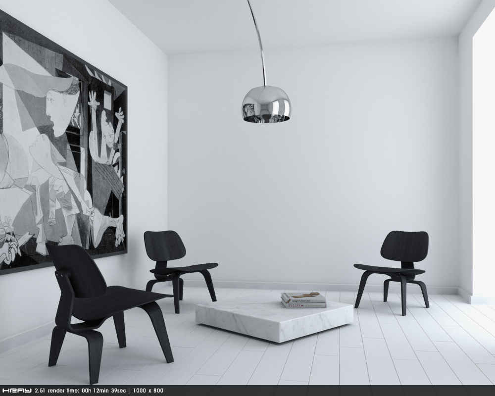 Setup is very basic and actually is nothing to do in Kray (I render with two passes which is necessary). Btw QMC I do not like it I do not use and I will never use it...is too slow, too noise, ruin surfaces setup, make longer AA phase. I am fan of pure Final Gathering which is difficult but only Kray offer clean GI (V-ray is far away from this quality) and only problem with Kray is with small objects in scene (we need GI per pixel for that or Z axis fallow GI) Why V-ray in this case win. Somebody also complain AA in Kray but true is in middle, because Kray has some problems with GI generally, why AA, blur, transparency phases render slow also (huge part of power CPU is wasted for Final Gather)...why Kray need new engine which automatically make faster render those phases