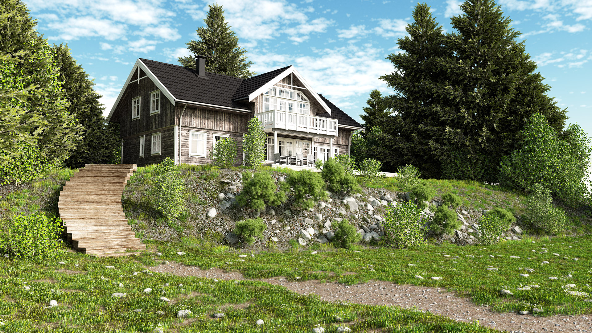 I know how hard is deal with plants. The biggest problem is not with exterior as everybody thinks, but with plants. It is so difficult render grass, leafs, trees , etc because they are full of physics (SSS, transparency, reflections, bumps, different diffuse) ...in my opinion this is very, very difficult part of renders and personally it get me Crazy! Also are some limits in Kray (not big deal but they are). The house looks very good. Clouds I would change for better quality and more blue Sky.