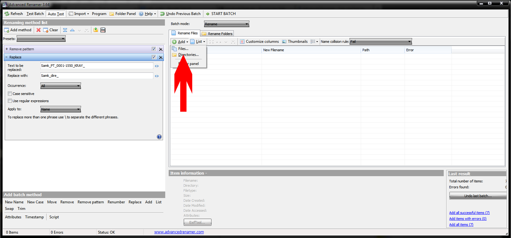 2. Choose DIRECTORIES to scan folder with file which we want rename