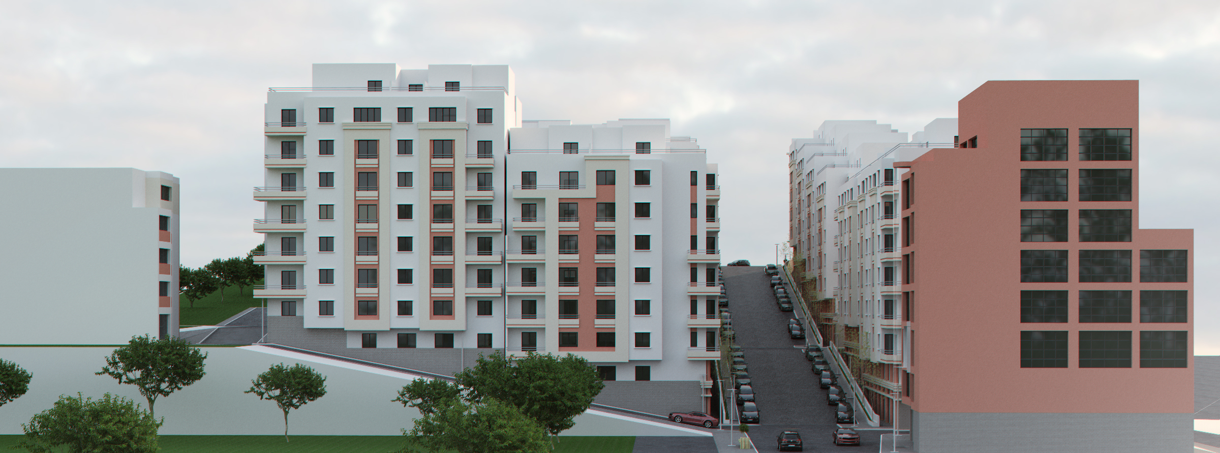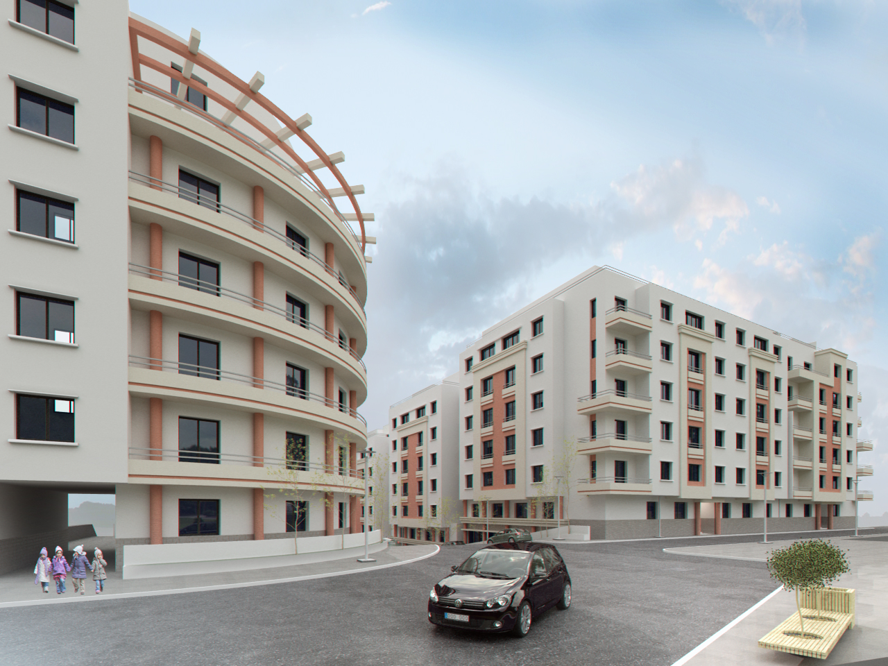 Everything you have to imagine and design by your self, especially trees, street details, surroundings, background etc.