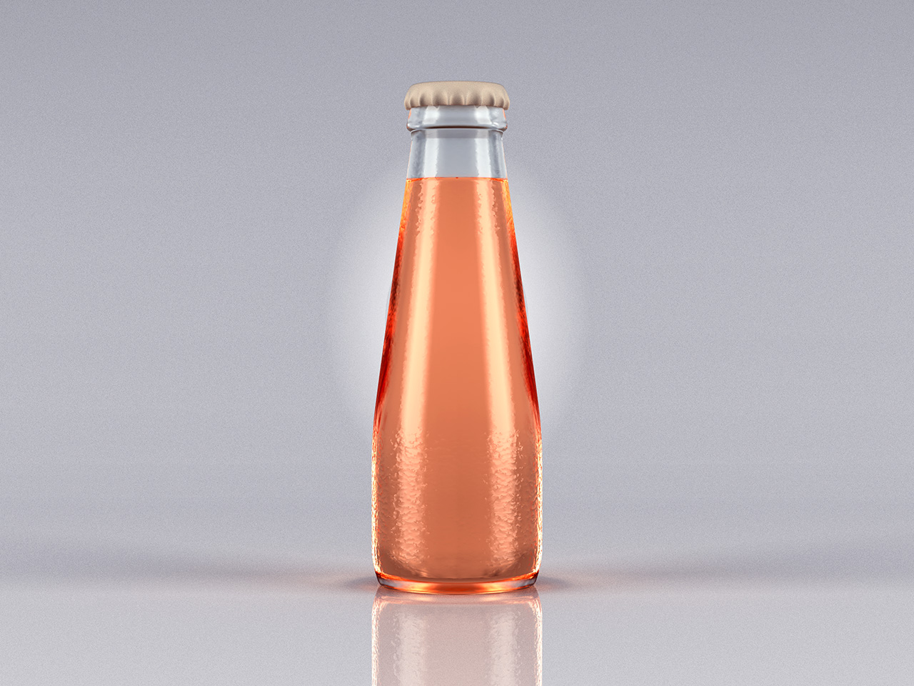 One of the things that is already very obviously wrong in my render, but I can't seem to get it right, is that in real life, and in the beauty shot of the San Pellegrino bottle above, the liquid colour goes all the way up to the contour of the bottle. In my render, it stops and leave like 2mm of glass wall thickness visible - no matter how I set my index of refraction. If I set my material to double-sided the liquid goes up to the bottle contour, but then I lose the definition in the interal glass reflections and refractions.