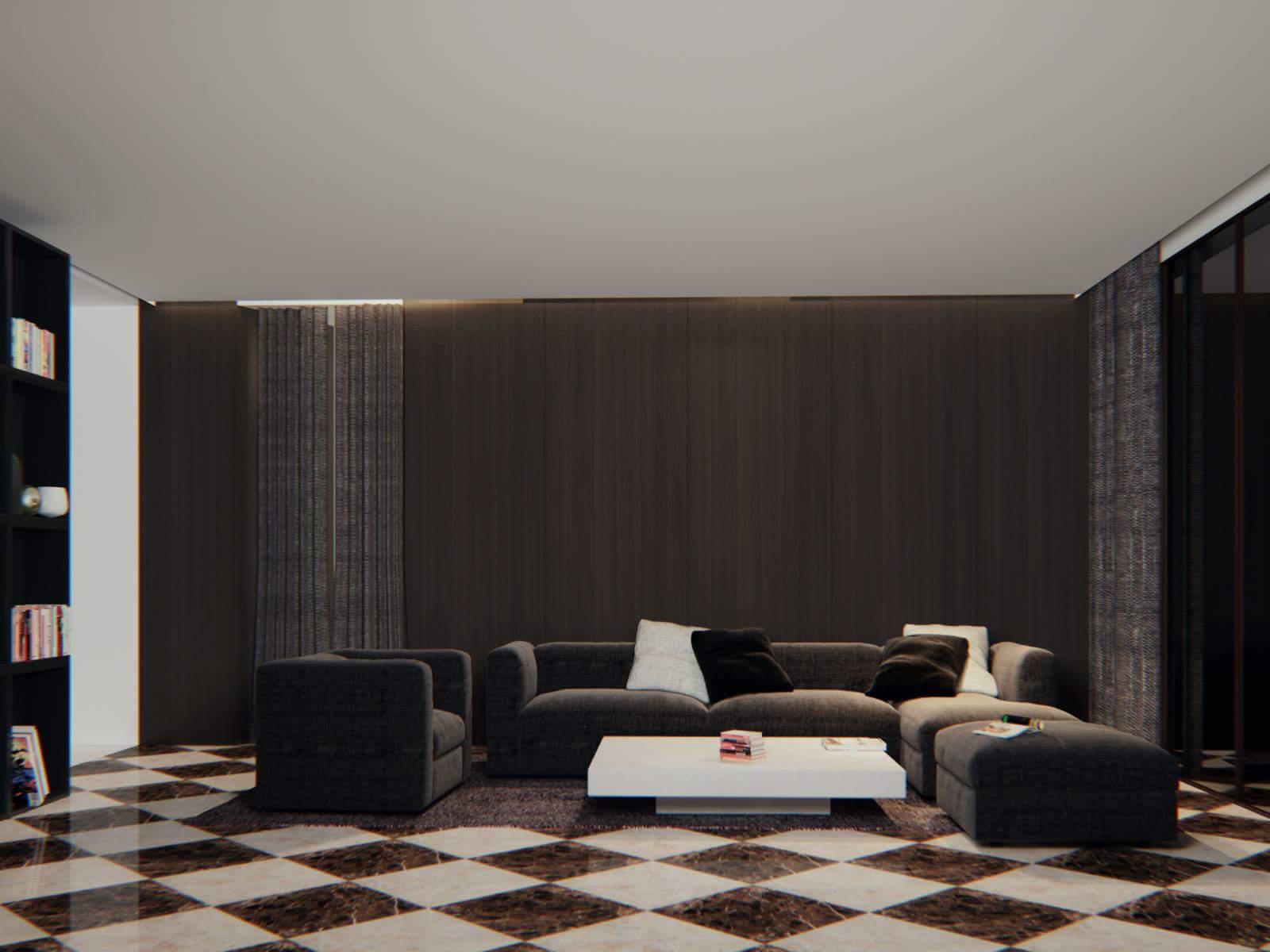 Hi! Looks good, but dial down the chromatic aberration: at the moment it looks as if you are using a totally crap camera. I understand the need to add some noise to make renders look more like a photograph, but with the state of digital cameras in 2015 you will NEVER see an interior shot with that much color fringe, and it screams "digital post" to me.