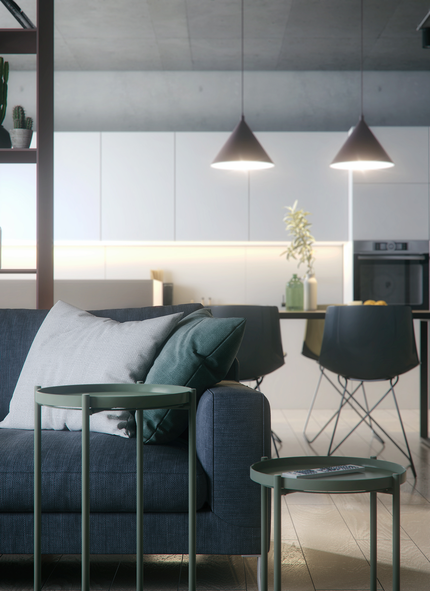 2) Except for the TV-set: you would never see such a glossy, curvy chrome bottom for a TV in an appartment with this style and level of detail.