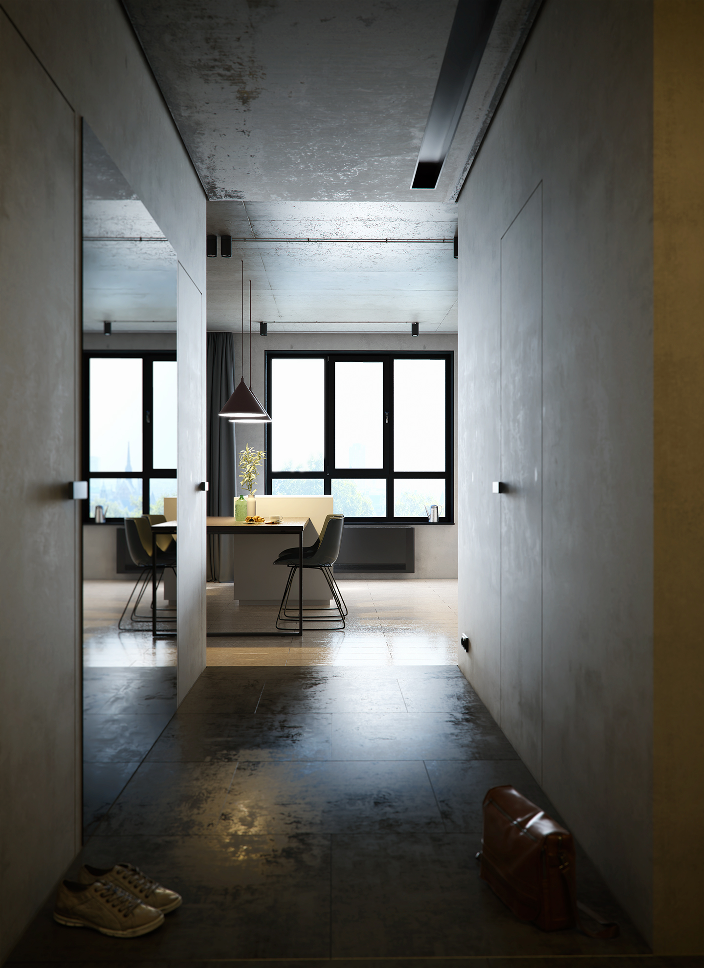 3) Same for the wall mounted air-conditioning: an appartment with this style and detailing would have vents integrated in the ceiling or wall. Given the narrow open join of walls and ceiling you could just delete the airconditioning. Of course I don't know what I'm talking about, because maybe your client is an airconditioning manufacturer that needs these images, or a project developer that wants it in there.