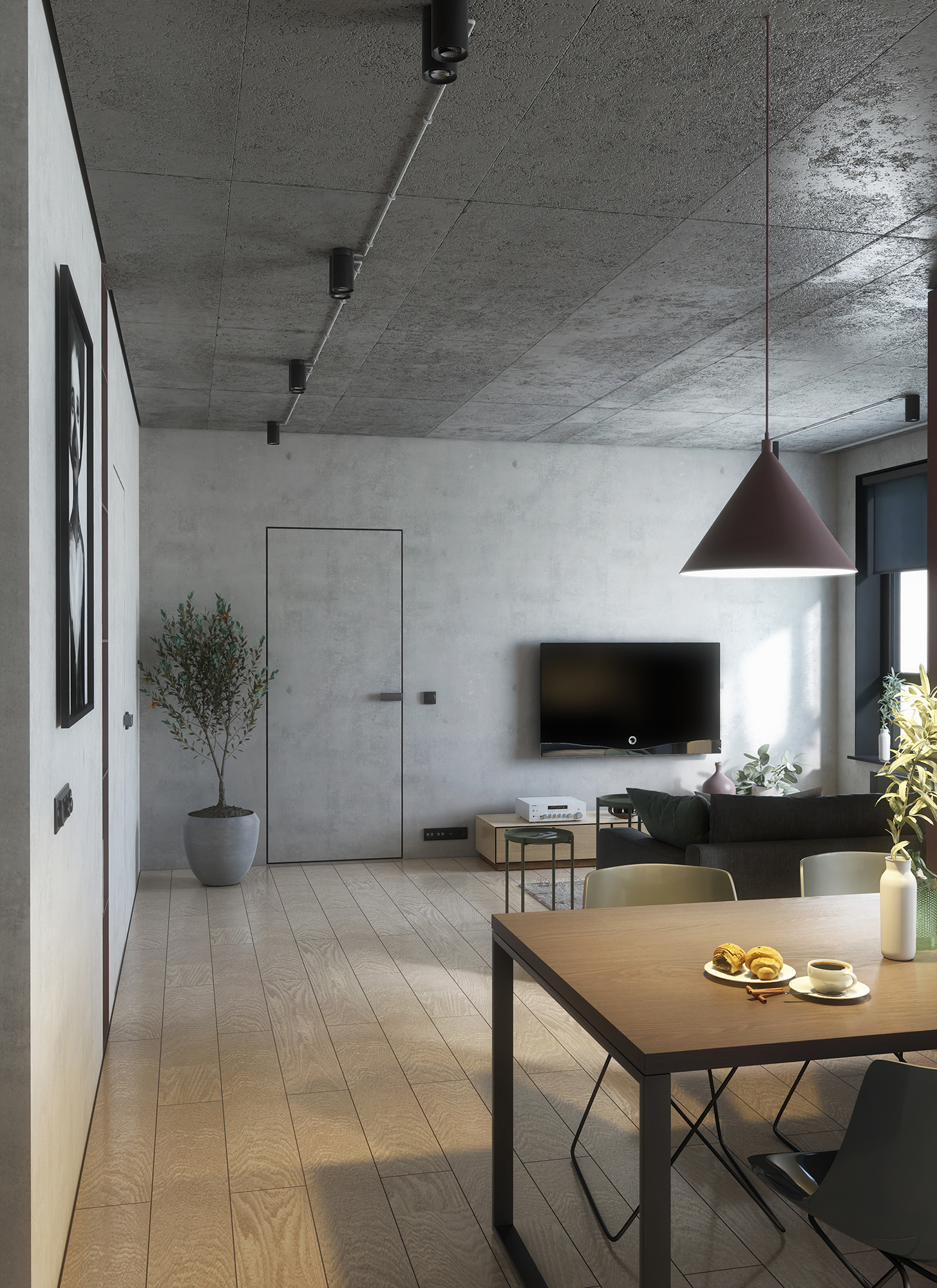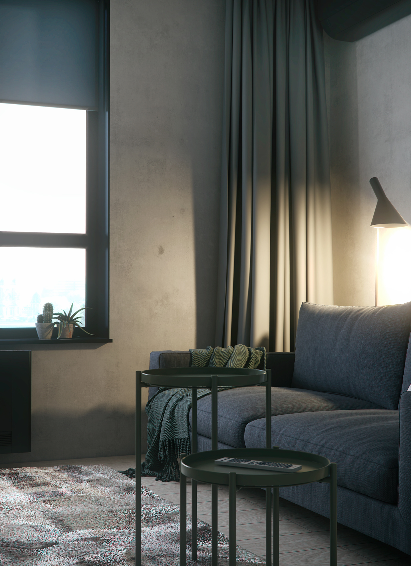 2) Except for the TV-set: you would never see such a glossy, curvy chrome bottom for a TV in an appartment with this style and level of detail.