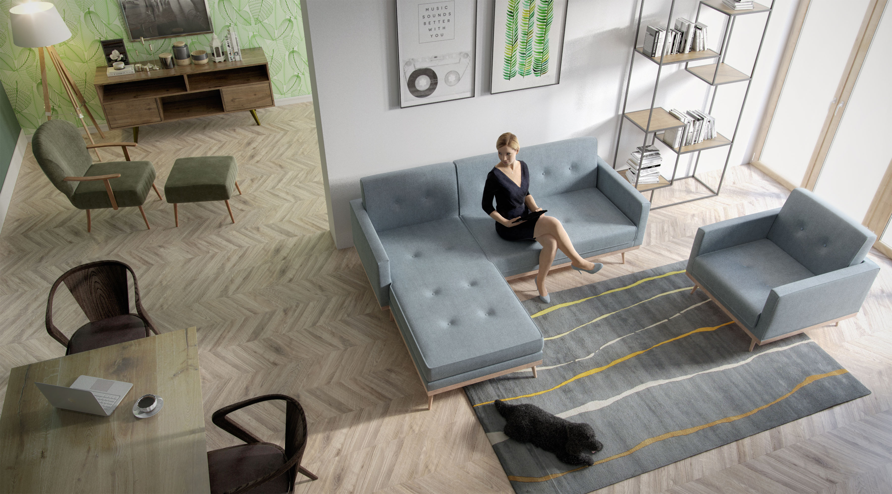 In principle that's super cool stuff, but the problem I have at this moment is that it's sort of a giveaway that the image is fake. Arch Viz images have become almost perfectly realistic in their simulation of light distribution, material shading and lens effects, in essence looking like a photograph to most people. The skin on these models however places an intuitively fake object in the middle of things, ruining the illusion...
