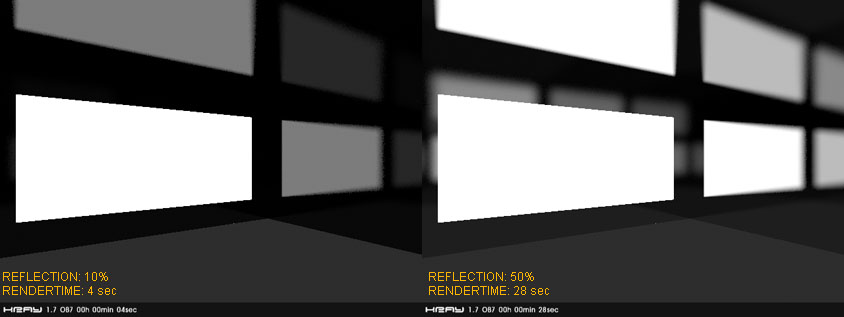 I have a scene with big metalic surfaces and render time is too high. Actually i would be satified if slight and fast reflection would be brighter (without all extra details that show up with higher reflection values).