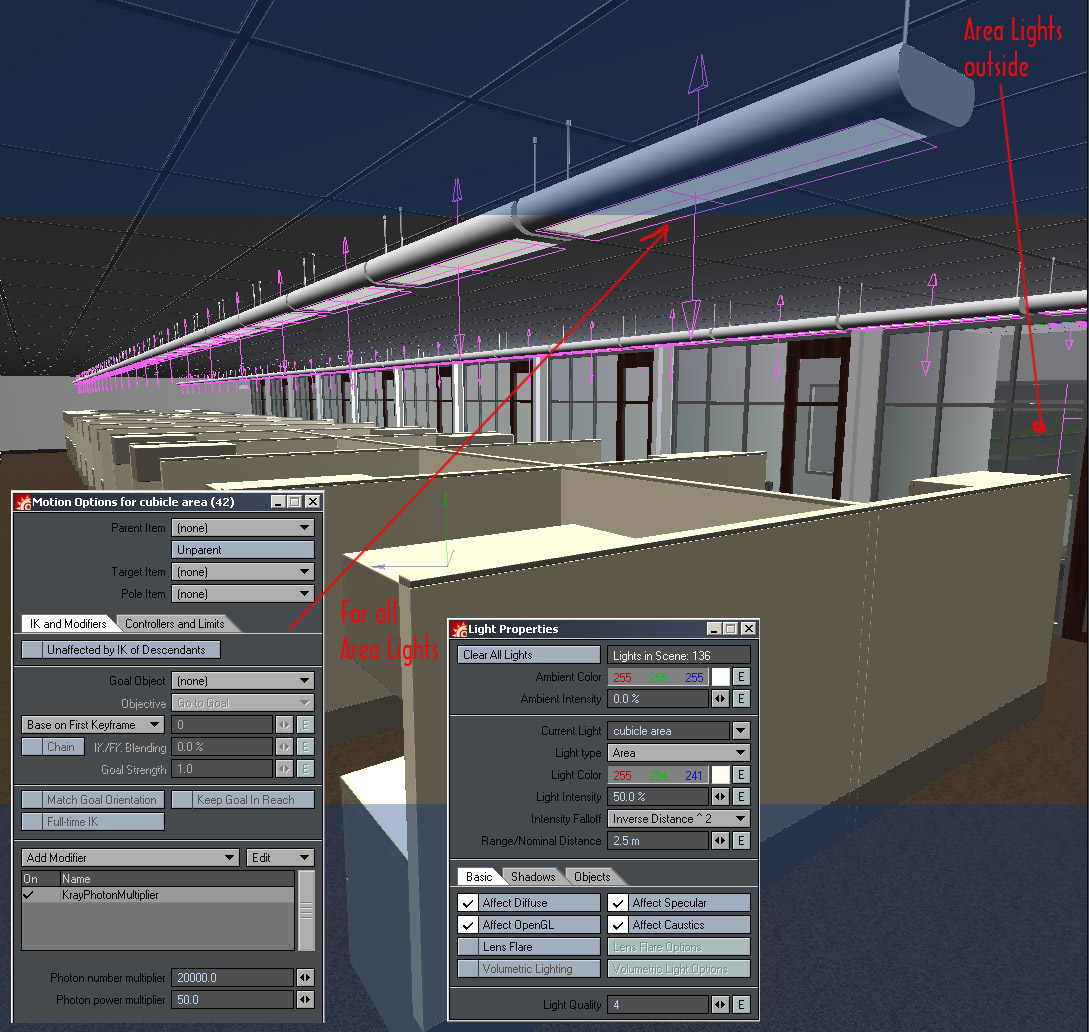 I think there's too many area lights. kray slows down a lot after using more than 5 area lights. I dont know why. I tried to render an airplane interior with many light fixtures(15) and it rendered as long as lw but AA much better in kray of course. What I hope to see kray do are interior renders lit by artificial lighting. I haven't seen commercial and restuarant spaces in kray yet with more dynamic lighting. Its mostly dayllighting I see.
