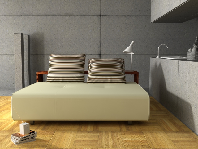 On a side note: the first image need a brighter exposure to look more realistic. We (3D renderers) tend to not want to lose any of the dynamic range, thus making images like this a bit darker than interior photographers would do (and by consequence than we are used to seeing). Typically, for a hygienic setting like this the white would be a bit overblown. I've attached a version that's corrected in Photoshop to be both brigther and less saturated in the top white wall part - for the same reason: the white needs to feel like clean white instead of browny orangey. In reality the color bleed is there, but our brain compensates for this because we know for a fact that the wall is white, just like white paper seems white to us when held under a tree in the shade, while in reality it is greenly lit. Also, the lower wall part under the marble top and sinks (behind the towels) appears a bit too uniformly lit. You'd expect a bit more feel of shadow here. Potentially you need to make the inside-underside of the marble top a lot darker so less light is bounced back on to the wall.