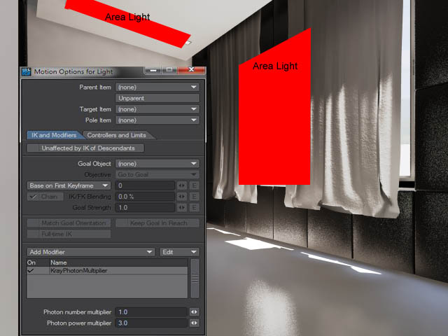 Do not use transparency for curtain (of course are some situation when You have to). This is next potential situation to make photons let say "dizzy". I post double translucency NODE for curtains, so photon comes from outside through curtains and gives light in another side...but coming from inside to outside less (to protect area windows from over bright). Inside scene control for both side of polygon (must be ONE SIDE poly!). Also this works well with plants: grass, tree leafs (apparently is no another choice for that and this is the best solution now. We do not have yet SSS shader in Kray which make better light).