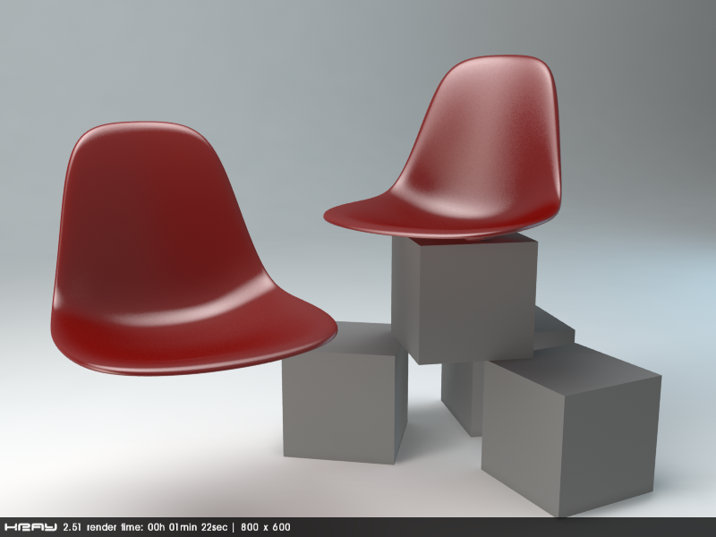 In scene You have a couple of boxes (for testing contact shadow) and also plastic chair with high blur. Setup for blur is huge but remember high luminosity value need high setup of blur ...why I use Area lights + blur with small luminosity value.