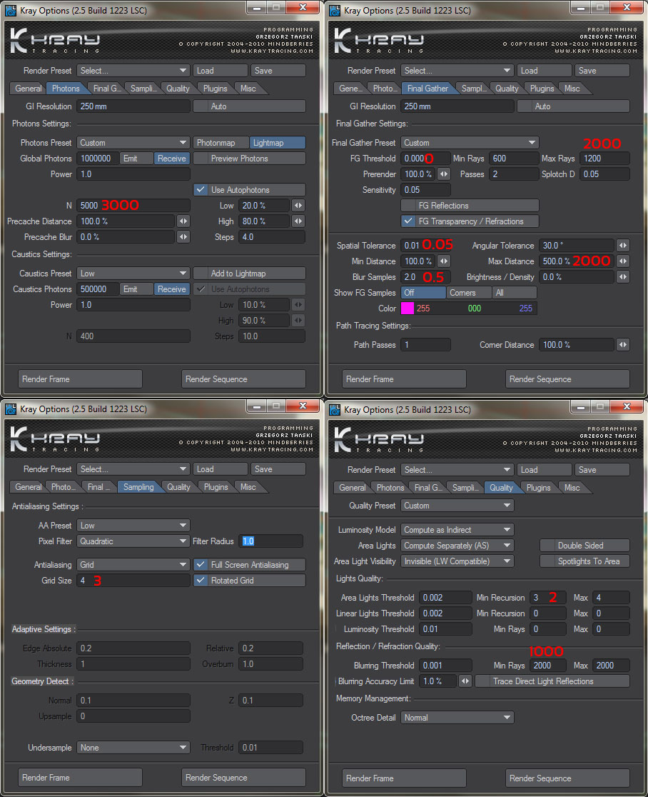 PS: I just got an idea about K3.O menu. We could have an extra tab with all relevant settings (photons, fg, quality,...) and with a single click we could export this extra tab to jpg image and post it on forum. Much simpler than this print-screening and pasting in photoshop and.....so on... :)