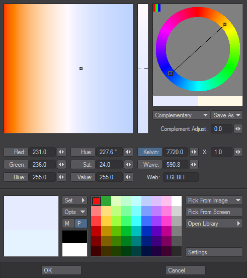 1) About the colour: the Kelvin value just get converted into RGB values, right? I changed it as you said, into 7720 Kelvin. Very slightly more blue overall, but the change is so subtle that it gets lost in the colour grading. My previous colour was 235 / 245 / 255. Your Kelvin colour is 231 / 236 / 255. Not that big of a change, but it looks nice!