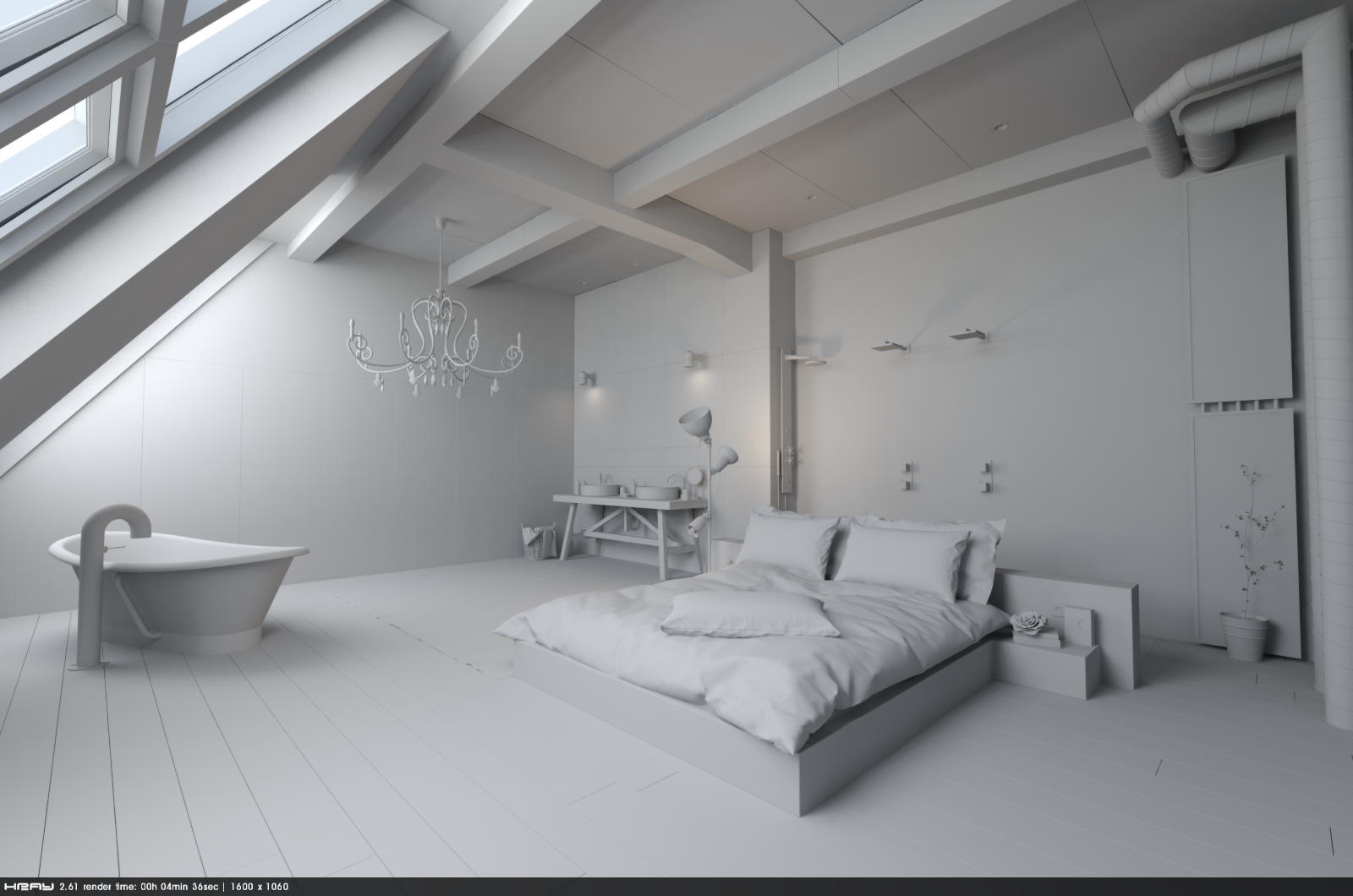 All surfaces Nodes. No specular. Time render is longer then V-ray but Kray has no shaders at all include no physical lights support inside engine.